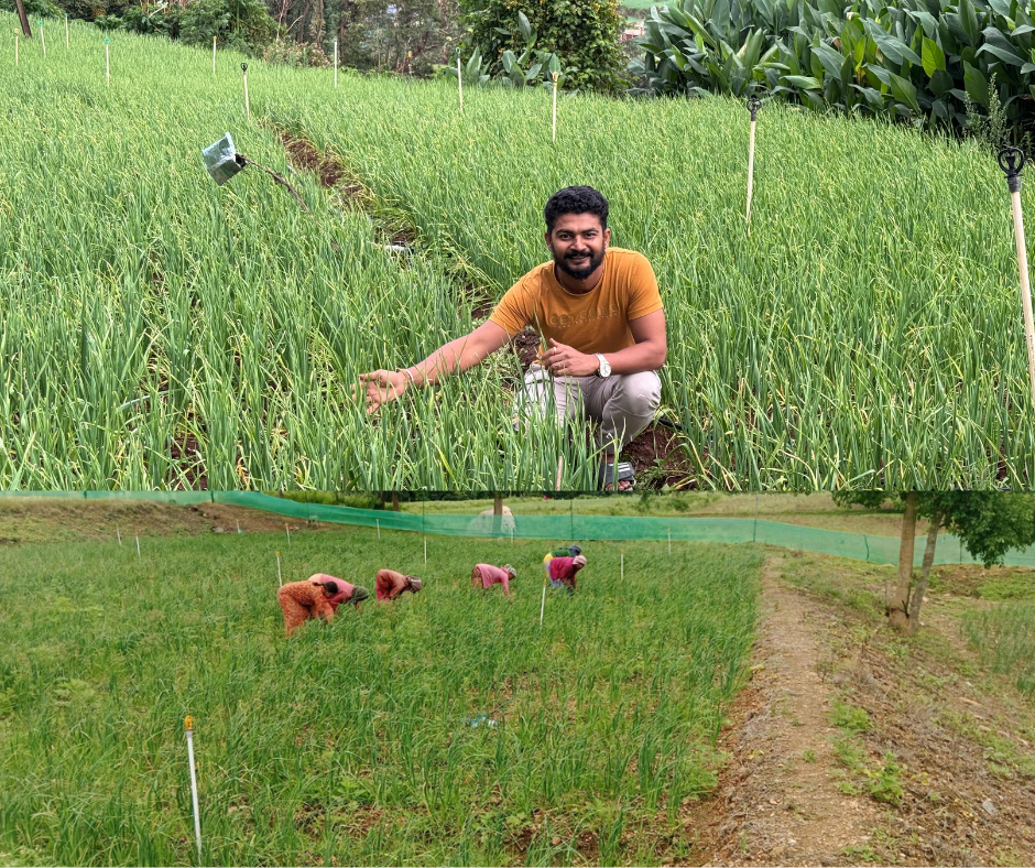 Weed Removal at 30days Growth at Allium Pilot , Chikyelachatti, Gundlupete